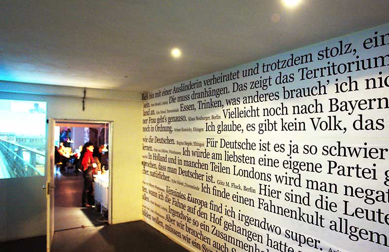 Exhibition in Karlsruhe May 23 - October 15, 2008 Vertrautes Terrain Contemporary Art in / about Germany that's the title of a show where [Forgotten Flags] is presented at ZKM in Karlsruhe. It is a pretty big exhibition. |